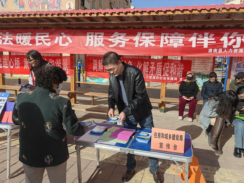 4月8日,肃南县住建局组织干部职工在裕昌社区中心广场开展“春风送法暖民心,服务保障伴你行”农民工法治宣传教育日活动。