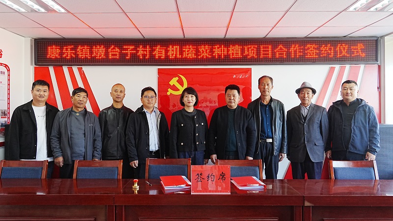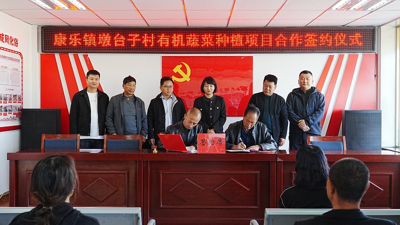 10月14日,康乐镇墩台子村举行有机蔬菜种植项目合作签约仪式,康乐镇主要领导、湖北省钟祥市绿邦生态农业发展有限公司总经理、墩台子村村干部及群众代表参加仪式。