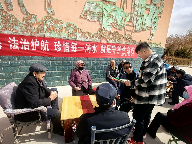 组织各单位利用电子显示屏同步点亮“筑牢国家西部生态安全屏障,建设新时代全国节水型社会新标杆”等宣传标语滚动播放,形成共同宣传“世界水日”“中国水周”的浓厚氛围。积极组织镇、村河长、水利工作人员及志愿者开展巡河活动,沿河捡拾垃圾、排查河道问题,同时,向沿途群众发放爱护水资源和生态环境保护的宣传资料,呼吁广大群众爱护环境卫生、共同参与护河行动。联合康乐明德学校开展“节约用水共创绿色校园”宣传活动,以动画的形式播放节水宣传教育片,引导广大师生践行绿色低碳的生活方式,带动学校、家庭、社会共同珍惜水资源、保护水环境。走进康隆社区向农牧民群众宣传各类法律法规和节水知识,引导农牧民群众合理用水、高效用水、减少浪费。