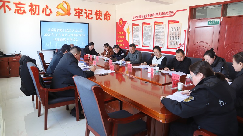与会人员对县法院过去一年的工作给予充分肯定,认为工作报告内容全面、重点突出、数据扎实,展现了法院公正司法、司法为民的责任担当。特别是在维护牧民权益、化解草场纠纷等工作中取得了积极成效。结合藏乡实际情况,与会人员围绕优化司法服务、强化纠纷化解提出建议。一是深化司法服务下沉,建议法院常态化开展普法宣传、法律咨询等便民服务,推动司法资源向基层延伸;二是加大矛盾纠纷调处力度,健全派出所、司法所、综治中心与法庭“多方联动”调处机制,增加联合调处频次,高效化解草场、邻里等高频纠纷;三是强化数据信息共享,打通部门间司法信息壁垒,提升纠纷化解精准度;四是擦亮旅游法庭品牌,推动法庭与景区管理方、经营户深度协作,细化合作举措,打造具有牧区特色的司法服务品牌。