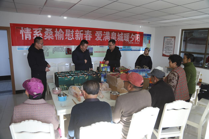 皇城镇党政主要负责人带队来到老年服务中心,为老人们送上节日慰问品,与老人们促膝谈心,仔细询问他们的饮食起居、健康状况和冬季保暖情况,并查看了中心的居住环境和安全设施,要求相关负责人严格落实安全生产责任,确保老人们度过一个平安祥和的春节。