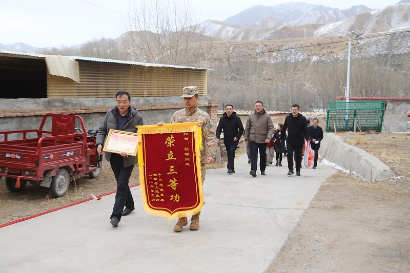 锣鼓喧天传喜讯,锦旗映彩耀门庭。2月9日,县人武部、县退役军人事务局联合皇城镇组成送喜报工作组,先后前往长方村程瑞、向阳村尹自虎家中,为军属送上三等功喜报和奖励金,让军属共享荣光,传递党和政府对军人家庭的关怀与温暖。