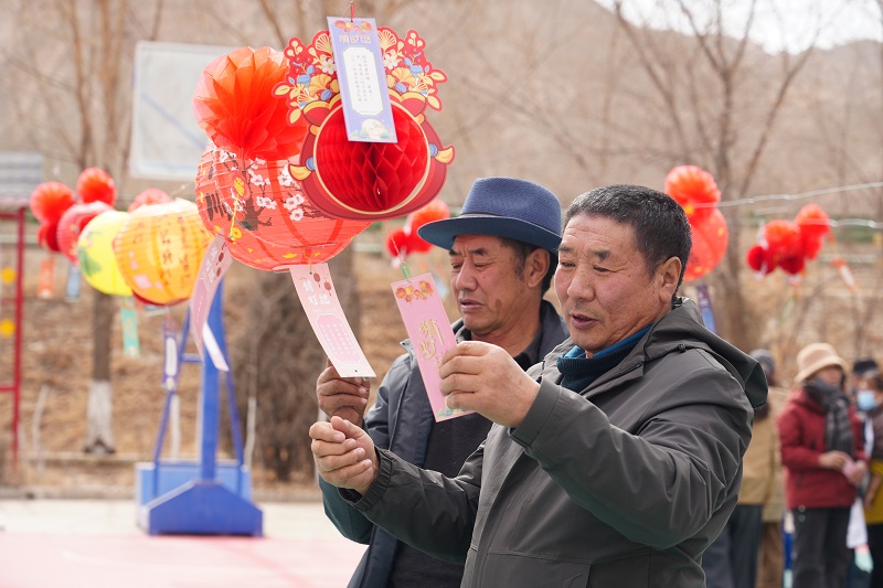 赏灯猜谜,共话团圆愿景。赏灯猜谜作为元宵经典习俗,成为此次活动传递团圆温情、厚植文化认同的重要载体。活动现场免费提供花灯制作材料,工作人员手把手指导大家共同制作,让红彤彤的花灯成为同心小屋最亮眼的风景,营造喜庆热烈的节日氛围。同时,现场悬挂涵盖传统文化、生活常识、民俗知识的灯谜,各族群众踊跃竞猜、相互探讨,在趣味互动中传承文化知识、共话团圆美好,让“中华民族一家亲,同心共筑中国梦”的理念在赏灯猜谜的温馨场景中深入人心。