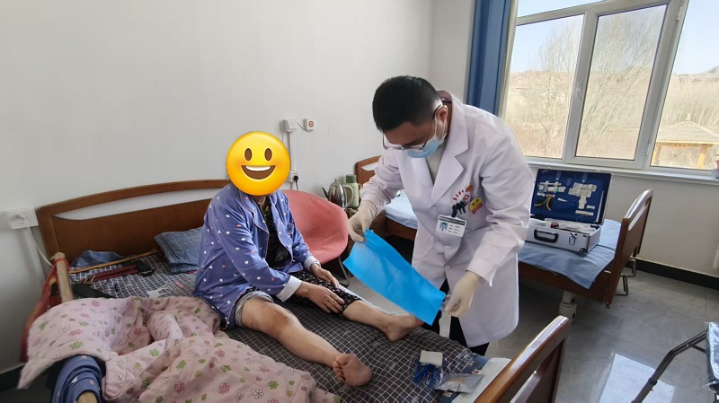 抵达现场后,医护人员始终秉持细致耐心的服务态度,严格遵循无菌操作规范,动作轻柔细致地为老人完成伤口清理、创面消毒、敷料更换、妥善包扎等全流程操作,最大限度减少老人不适感,确保换药过程安全规范。同时,依托卫生院术后康复+慢病管理+上门护理的特色服务体系,医护人员一对一为老人讲解术后康复注意事项,反复叮嘱老人要保持伤口清洁干燥、避免关节过度负重,现场示范简易康复锻炼动作,耐心解答老人的各类疑问,细心安抚老人情绪,全程实现诊疗、护理、康复、宣教一站式闭环服务,让老人倍感温暖。