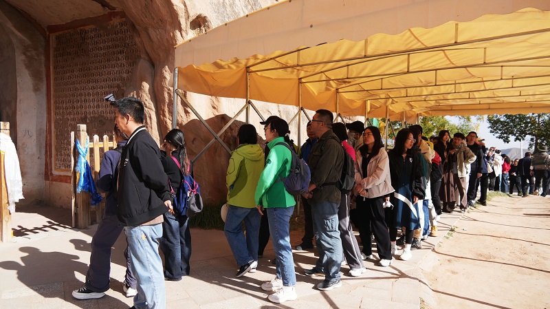 来自厦门的吴智文说:“一直向往‘三十三天’石窟,这个国庆终于成行。我来自海边城市,看到这样的石窟奇观,感觉非常震撼,不虚此行,希望以后还能再来。”