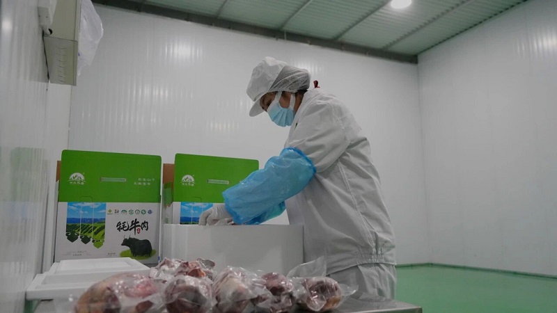 “现在冷链物流和牛羊肉精细化分割非常好,我们从屠宰分割到冷链运输全程控温,包装也做了真空锁鲜处理,产品远销至广东、深圳等大城市,能够保证肉质和刚出栏时没啥两样。同时我们还搭建了电商平台、直播带货等线上销售渠道,预计今年订单量要多于往年,消费者认可度越来越高的同时,也让肃南牛羊肉的品牌影响力越来越大!”肃南县雪雲农牧发展有限公司副总经理王勇介绍道。