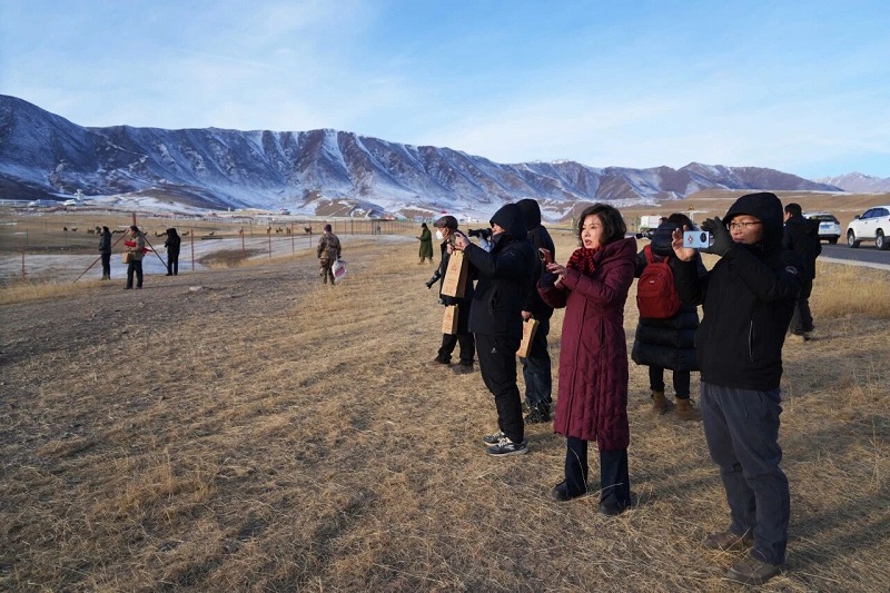 年会以采风拉开序幕。清晨,与会摄影家们走进祁连山鹿文化生态旅游区,在冬日清晨的熹微晨光中开启创作之旅。皑皑白雪映衬着苍茫祁连,静谧的景区宛若仙境。摄影家们或轻步靠近,与漫步林间的马鹿友好互动;或全神贯注,将手中的“长枪短炮”对准这些祁连山孕育的灵动精灵,捕捉它们奔跑、觅食的鲜活瞬间;还有摄影师操作无人机腾空而起,以天空之眼俯瞰雪山、森林、鹿群与晨光交织的壮丽画卷。清冷的空气里快门声此起彼伏,定格下人与自然和谐共处的动人画面。