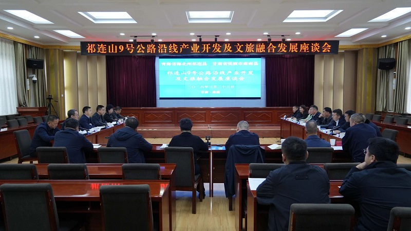 3月23日,祁连山9号公路沿线产业开发及文旅融合发展座谈会在肃南县召开。肃南县委书记赵多磊,县委副书记、县长钟向辉与青海省祁连县委副书记、县长梅尖参一行,围绕深化区域产业协作、共促文旅融合发展进行深入座谈交流。两县相关部门负责同志参加座谈。