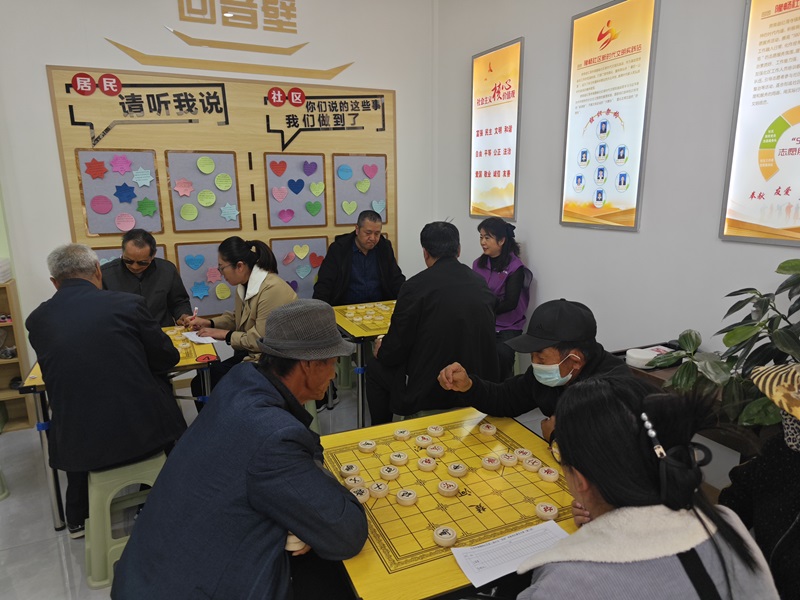 活动中,老人们聚精会神,在棋盘上布兵摆阵。棋盘上,兵来卒往、炮飞马跳,充满了智慧、欢笑与赞美,现场一片热闹景象,常常一局棋下来引得众人欢声笑语,说着吵着热闹非凡,大家以棋牌怡情,在欢聚中玩出邻里和睦景象,增添了浓浓的欢声气息。