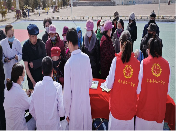 我院邀请山丹县中医院内科医师王静文、山丹县人民医院放射科主管技师龙亮及肃南县医院妇产科医师牛志琴、放射科医师祁国荣、超声科医师章海龙、护理主管护士姚琴琴各位专家义诊。