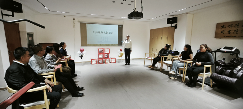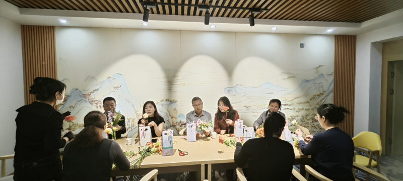 活动现场,邀请了肃南县职教中心讲师以公共服务礼仪为题进行了培训,老师以交易中心服务窗口为主要内容,开展服务礼仪、电话沟通、个人形象管理等方面的授课,并现场进行了模拟演练和现场点评指导。随后,开展了插花活动,花艺老师对花枝修剪、选花搭配、造型设计等要领进行了详细讲解,在花艺师的指导下,大家边学边练,认真学习插花,现场欢声笑语、气氛浓厚,花香弥漫。