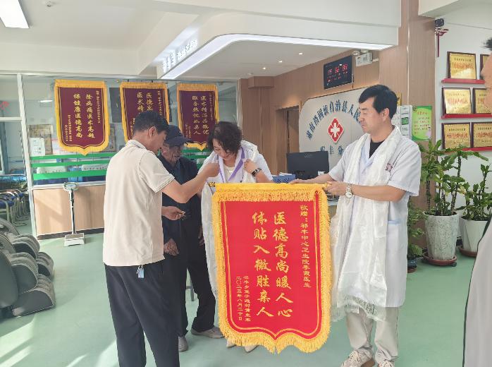 “本来以为是胃疼,没想到是要命的心梗,多亏了李霞医生救了我,真是基层百姓的好医生”近日,康复出院后的黄先生将一面写有“医德高尚暖人心,体贴入微胜亲人”的锦旗送到祁丰乡中心卫生院,并为李霞医生献上洁白的哈达,连连道谢。