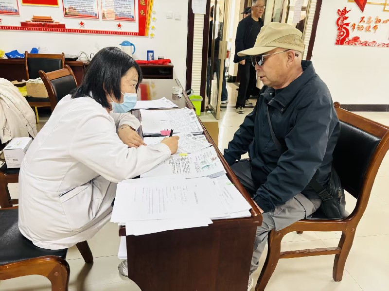 体检现场,医护人员严格按照规范操作,为老年人提供了包括体格检查、生化检测、血尿常规、糖化血红蛋白、腹部B超、心电图、胸部DR等在内的10余项免费检查。他们不仅技术娴熟,更以亲切的方言与老人拉家常,缓解紧张情绪;对行动不便者,全程搀扶;遇听力障碍者,则通过“笔谈+手势”细心交流,确保沟通无碍。
