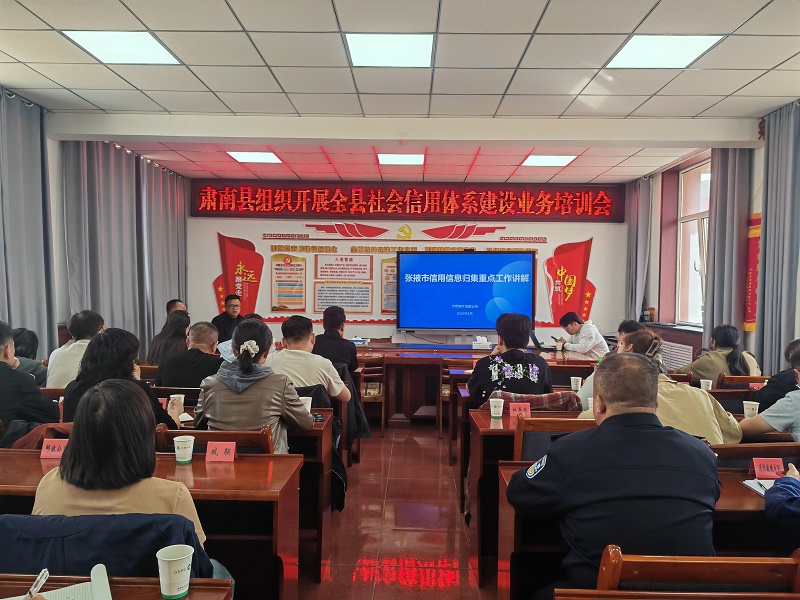 为深入贯彻落实国家、省、市关于社会信用体系建设的决策部署,加快推进全县信用体系建设高质量发展,全面提升各单位信用工作业务能力,4月20日,肃南县组织召开全县信用体系建设业务培训会。县社会信用体系建设领导小组成员单位及相关重点行业领域负责信用工作的业务骨干和操作人员参会。