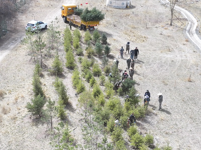 本次绿化造林活动计划种植云杉1260棵、松树150棵、垂柳5棵、金叶榆20棵。截至目前,已完成大肋巴河口至乡政府沿路两侧松树种植任务。
