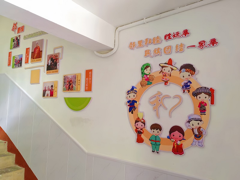 今年,红湾寺镇选取5栋楼14个单元打造“石榴籽”同心楼,楼道内设立先进角,宣传各单元“道德模范”“民族团结进步家庭”“法治示范户”“好婆婆”“好媳妇”等“先进户”,通过一户典型带动一个单元;以“一楼道一主题”打造文化墙,宣传身边的民族团结小故事,以润物细无声的方式充分激发各族居民见贤思齐、睦邻向善、共建美好家园的内生动力,推动铸牢中华民族共同体意识深入人心。新建“石榴籽”网格党群服务驿站5个,改造提升2个,为各族群众深度沟通交流搭建了新平台。维修改造老旧居民住宅楼基础设施8幢,开展绿化改造11处,清除整治破损公益广告、楼道垃圾堆物、“牛皮癣”32处,不断提升社区楼院“颜值”和“气质”,切实延伸服务社区居民的“触角”,有效打通服务群众“最后一米”。