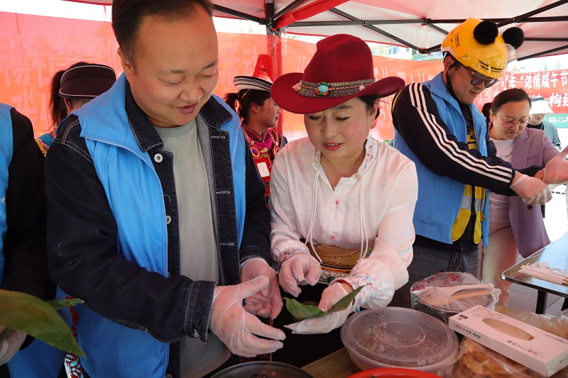 包粽子比赛中,各族居民们围坐在一起,捋粽叶、填糯米、放红枣、扎绳子,动作娴熟,配合默契。大家一边包着粽子,一边分享着生活中的趣事,欢声笑语回荡在整个活动现场。象棋棋王争霸赛吸引了一众象棋爱好者的围观,选手们沉着冷静、深思熟虑,围观群众也同样全神贯注,现场气氛紧张而热烈。此外,还有反诈宣传、健康义诊、爱心义剪等惠民活动,让居民群众在感受传统节日欢乐的同时,享受到实实在在的便民服务。
