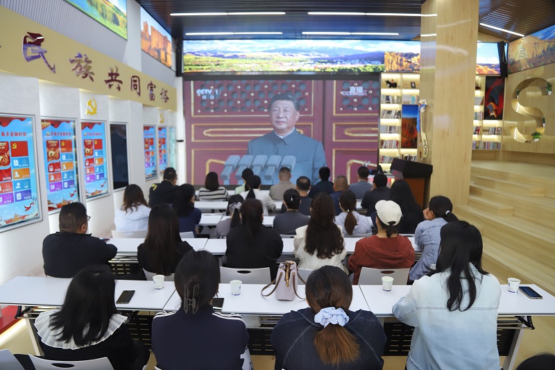 精心组织,营造浓厚氛围。为确保观看活动有序、有效,镇党委提前部署,对观看场地、设备调试、人员组织、安全保障等环节进行了周密安排。各社区通过宣传栏、微信群等线上线下多种渠道广泛宣传,引导邀请辖区各民族群众积极收看直播,充分展现了全镇上下对祖国的深切祝福和喜悦之情。