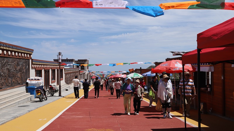 今年夏季,马蹄藏族乡央阔尔商业街以独特的民族风情和标志性藏式建筑吸引了各地游客驻足停留,截至目前,接待游客16万人次,实现旅游综合收入70余万元。