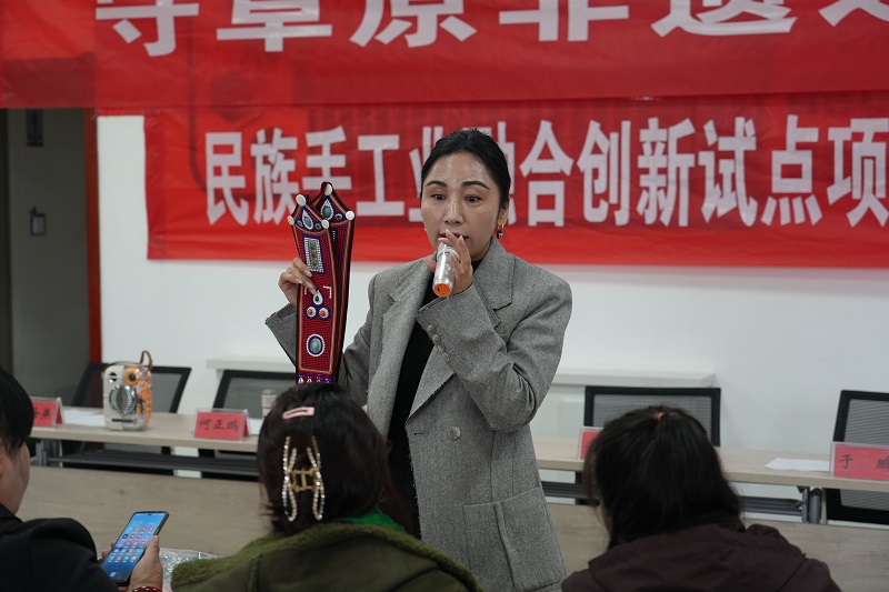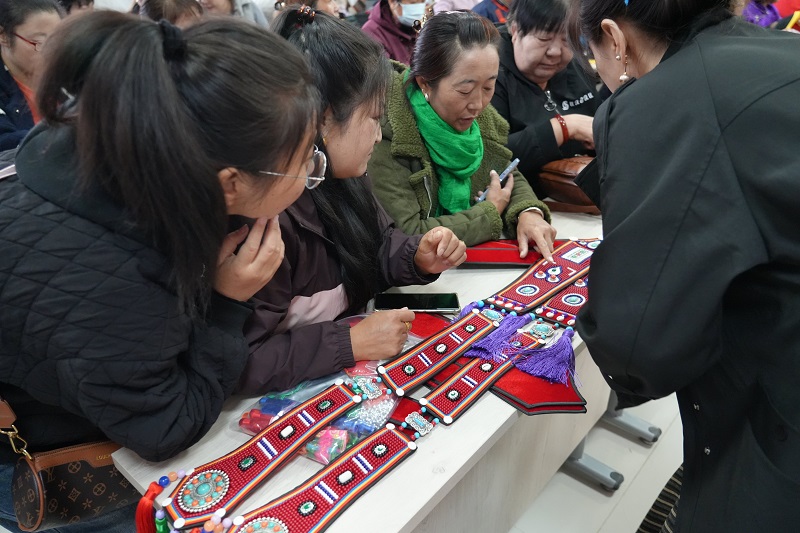 为确保培训实效,专门邀请了裕固族服饰省级代表性传承人杨海燕担任授课老师,采取“理论+实操”相结合的方式,通过现场演示、手把手指导,详细的讲解了裕固族头面的历史文化、基本针法、色彩搭配等知识,极大地激发了大家对非遗刺绣的浓厚兴趣。