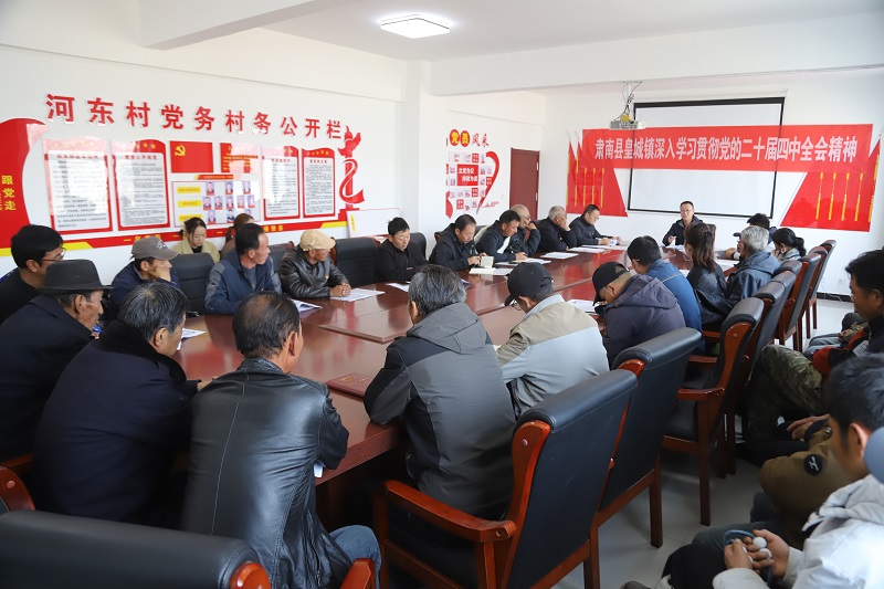 为深入学习贯彻党的二十届四中全会精神,推动全会精神在农牧村落地生根,11月5日,肃南县皇城镇党委、政府主要负责人分别前往泱翔片和东滩片,开展党的二十届四中全会精神专题宣讲会,全面系统地阐释了全会精神的核心要义,并结合各片区实际对贯彻落实工作进行了安排部署。