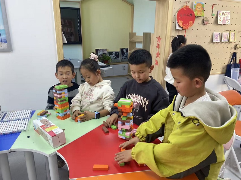 作业辅导中,志愿者化身“学业导师”,以“一对一讲解、小组互助”模式,为孩子们答疑解惑,监督完成作业、引导整理错题、总结学习方法,缓解家长“陪写难”困扰。创意绘画课堂上,孩子们在志愿者指导下发挥创意,用画笔描绘心中美好,锻炼动手能力与审美,收获成就感。益智积木活动中,孩子们分组协作搭建,锻炼多项能力,在互动中学会分享合作,在欢乐中收获成长。