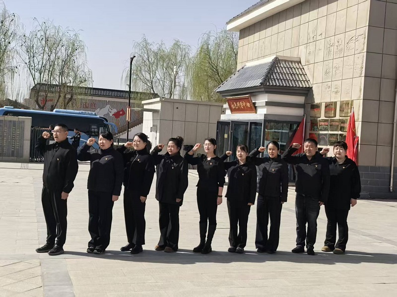 面对鲜红的党旗,全体党员高举右拳,庄严重温入党誓词,铿锵有力的誓言回荡在现场,进一步坚定了党员们不忘初心、牢记使命的政治信念。在讲解员的带领下,全体党员认真聆听红西路军的战斗历史与革命先辈的英勇事迹,深入了解革命岁月里的艰苦历程与不屈精神,接受了一场深刻的红色精神洗礼。