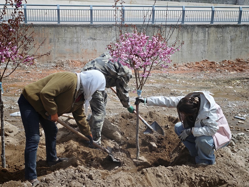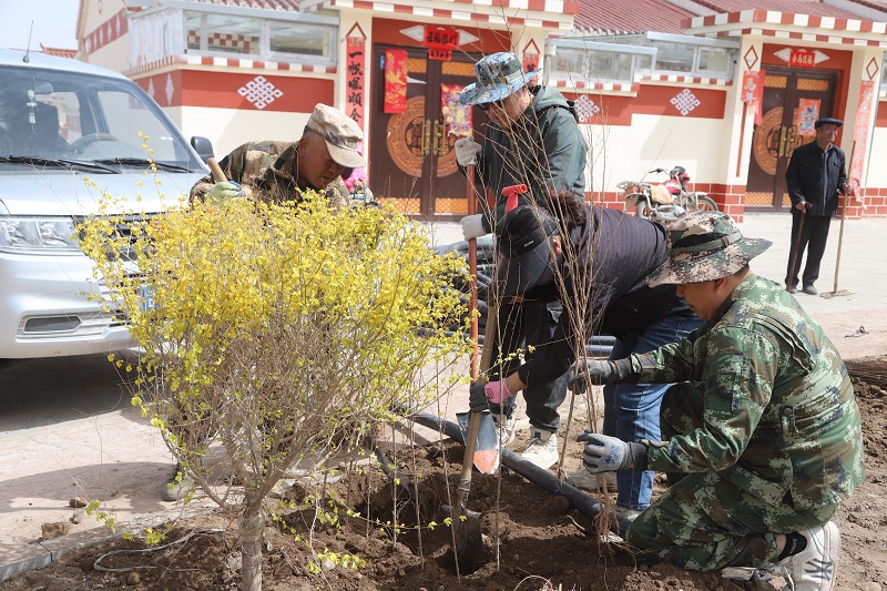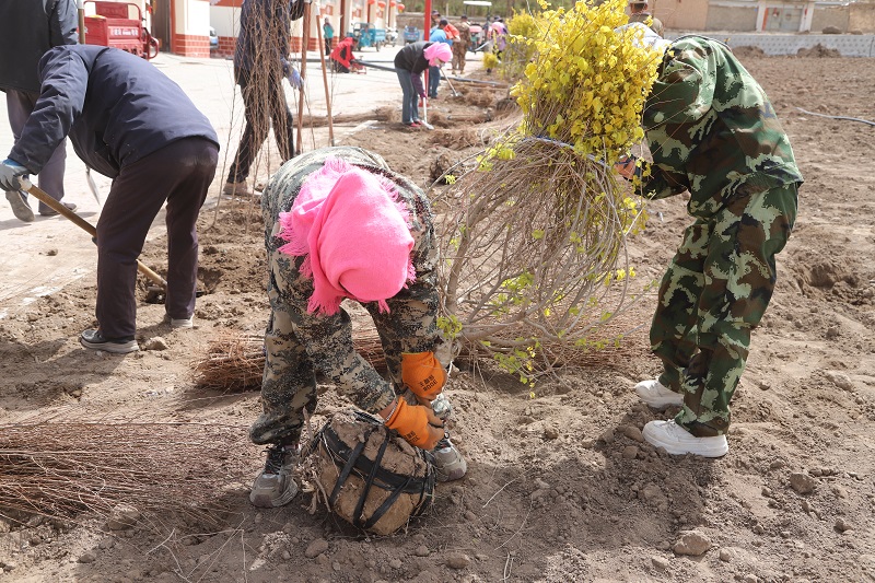 活动现场,干部群众分工协作、默契配合,呈现出一派“人勤春来早,植绿正当时”的生动景象。干部们与群众一同扶苗扶正、分层填土、提水浇灌,每一个环节都做得规范细致。“搬到新家后日子越来越舒心,现在和干部们一起种树,看着家园变绿变美,心里更有奔头了!”刚乔迁新居的村民王雪刚擦着额头的汗水,脸上洋溢着幸福的笑容。