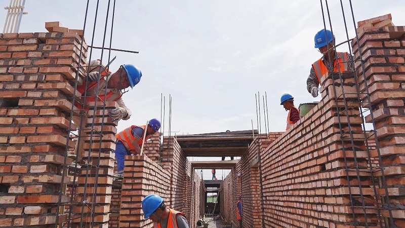 近日,记者来到中国能建葛洲坝集团张掖抽蓄项目上库区施工现场看到,施工期办公场所主体已完成建设,施工人员宿舍已完成桩基、主体已修建至二层,工人们各司其职,正在进行砌墙、抹灰、二次结构砌筑等施工作业,整个项目在紧锣密鼓地推进中。