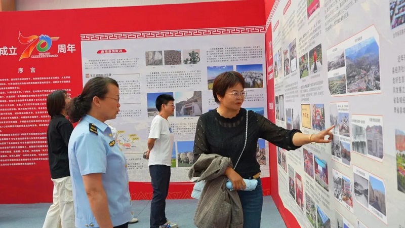 “感恩奋进七十载·同心共富新时代”主题交流展示活动,以经济社会发展专题片和展板的形式,通过大量的新旧图片,图表和数据对比,全面展现了自治县成立70年翻天覆地的变化和各族人民群众幸福安康的新生活,生动呈现了自治县70年来在党的建设、经济结构调整、特色产业发展、基础设施改善、生态环境保护、各民族交流交往交融和各项社会事业取得的辉煌成就。