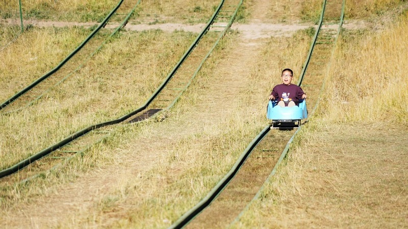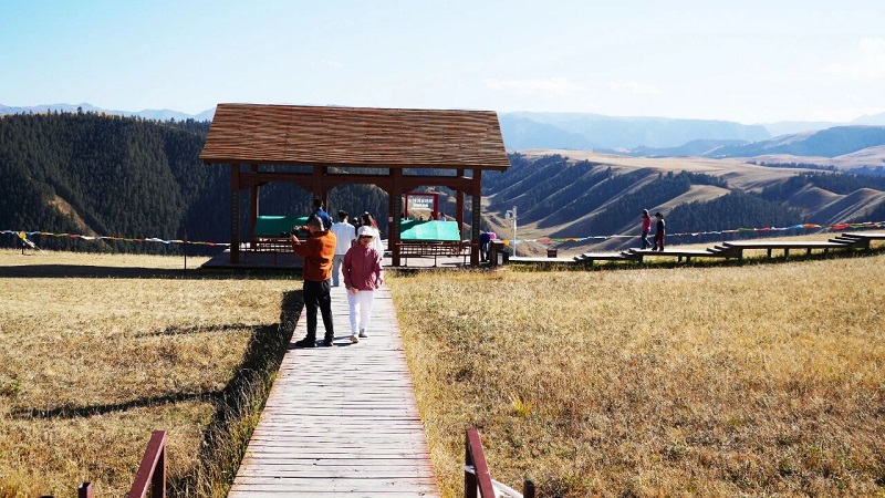 在肃南裕固风情走廊,辽阔的草原与远处连绵的山峦相互辉映,构成了如诗如画的美景。尽管已入深秋,微黄的牧草在微风中轻轻摇曳,仿佛一片金色的海洋。游客们漫步在草原的栈道上,尽情享受着大自然的宁静与舒适,欢声笑语在草原上空回荡。在滑草场地,游客们排着队,兴奋地等待体验,秋日独特的草原风光与滑草、射箭等体验项目,成为了游客争相打卡的“网红地”。