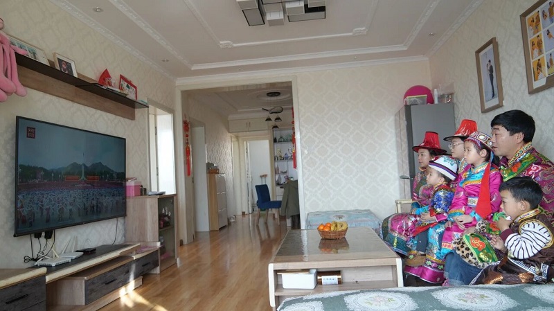 同样的感动与振奋,也在大河乡大岔村村民安海娜家中上演。一家人身着色彩艳丽的民族盛装,围坐在一起收看新年贺词,幸福的笑容洋溢在每个人脸上,将新年的喜庆氛围拉满。当贺词提及“绿水青山成为亮丽底色,人民群众获得感幸福感安全感不断增强”时,安海娜忍不住点头称赞。“这几年我们真切感受到了变化,草原更绿了,路更宽了,靠着生态旅游和特色养殖,收入一年比一年高。”她激动地说,“贺词让我们心里更亮堂了,新的一年要继续好好干,把日子过得像奶茶一样香甜醇厚。"