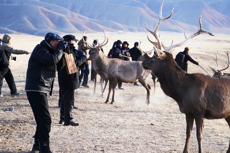 年会以采风拉开序幕。清晨,与会摄影家们走进祁连山鹿文化生态旅游区,在冬日清晨的熹微晨光中开启创作之旅。皑皑白雪映衬着苍茫祁连,静谧的景区宛若仙境。摄影家们或轻步靠近,与漫步林间的马鹿友好互动;或全神贯注,将手中的“长枪短炮”对准这些祁连山孕育的灵动精灵,捕捉它们奔跑、觅食的鲜活瞬间;还有摄影师操作无人机腾空而起,以天空之眼俯瞰雪山、森林、鹿群与晨光交织的壮丽画卷。清冷的空气里快门声此起彼伏,定格下人与自然和谐共处的动人画面。