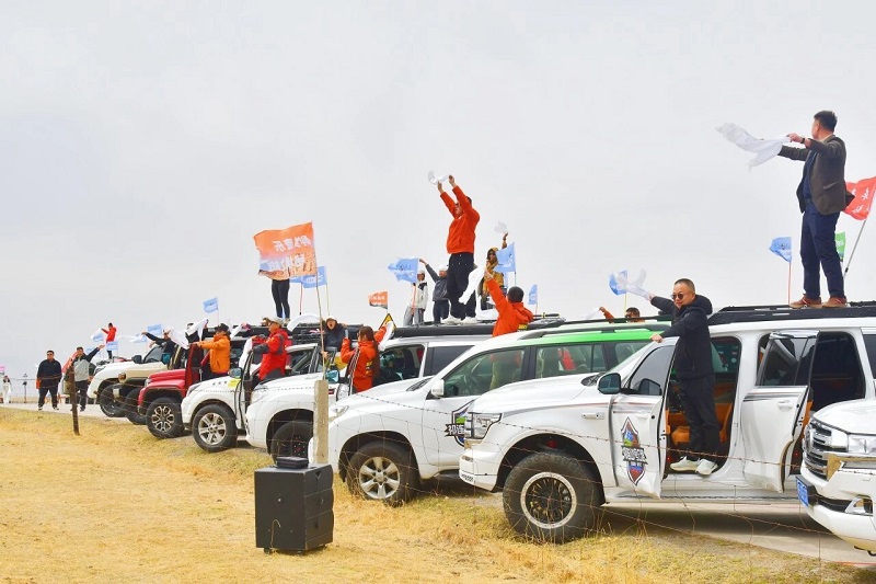 发车仪式现场气氛热烈,车队整装待发。随后,车队分西线、东线两路行进。