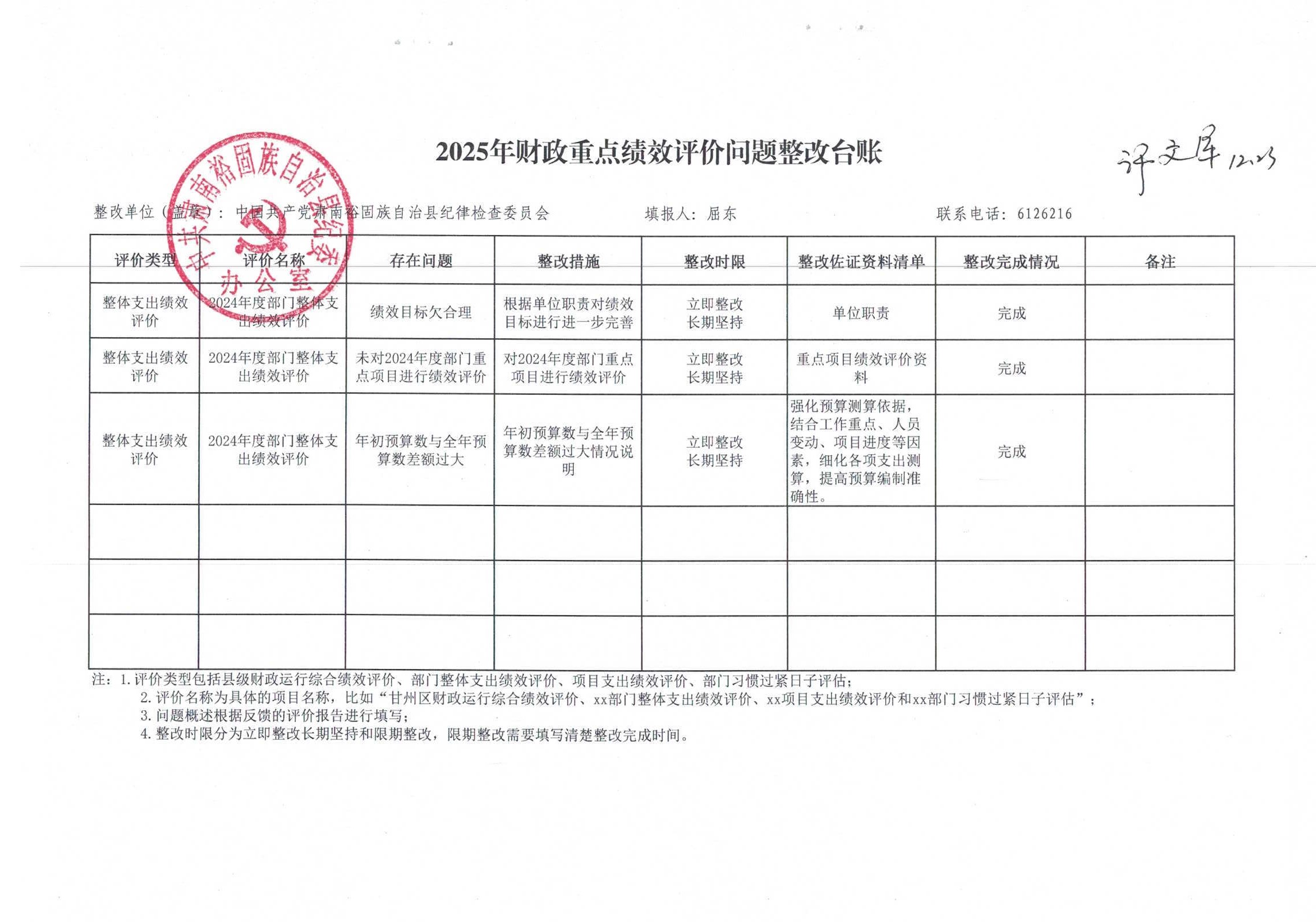 3.整改成效:2024年度2个重点项目绩效评价工作已全部完成,发现并整改项目管理、资金使用等方面问题,形成《2024年度重点项目绩效评价报告》及问题整改清单,为后续项目管理优化提供有力支撑。
