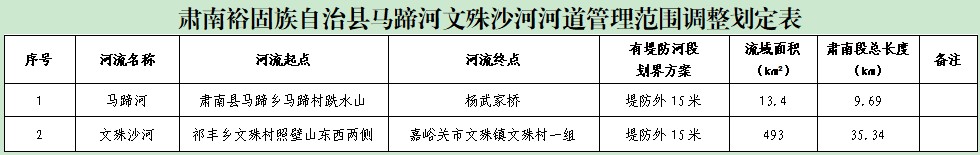 附件:肃南裕固族自治县马蹄河文殊沙河河道管理范围调整划定表