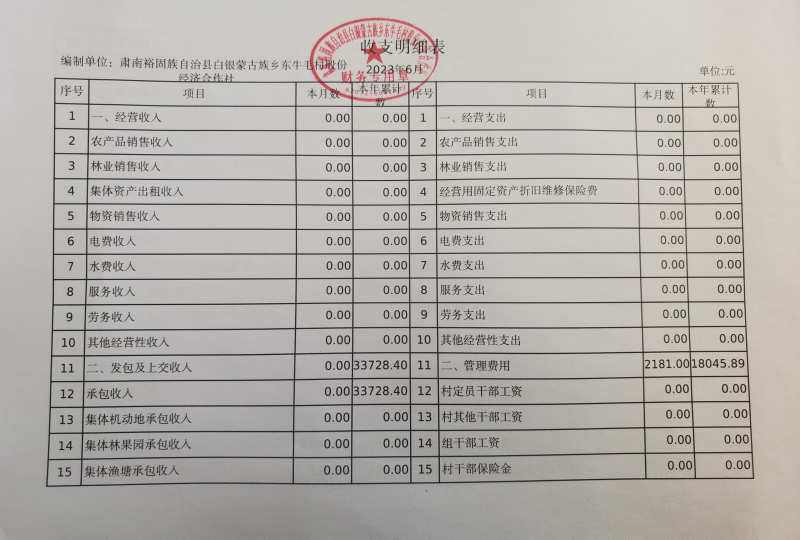 肃南县白银乡东牛毛村股份经济合作社收支明细表