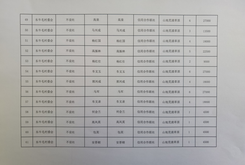 2023年肃南县白银乡落实第三轮草原补奖政策保底资金发放表
