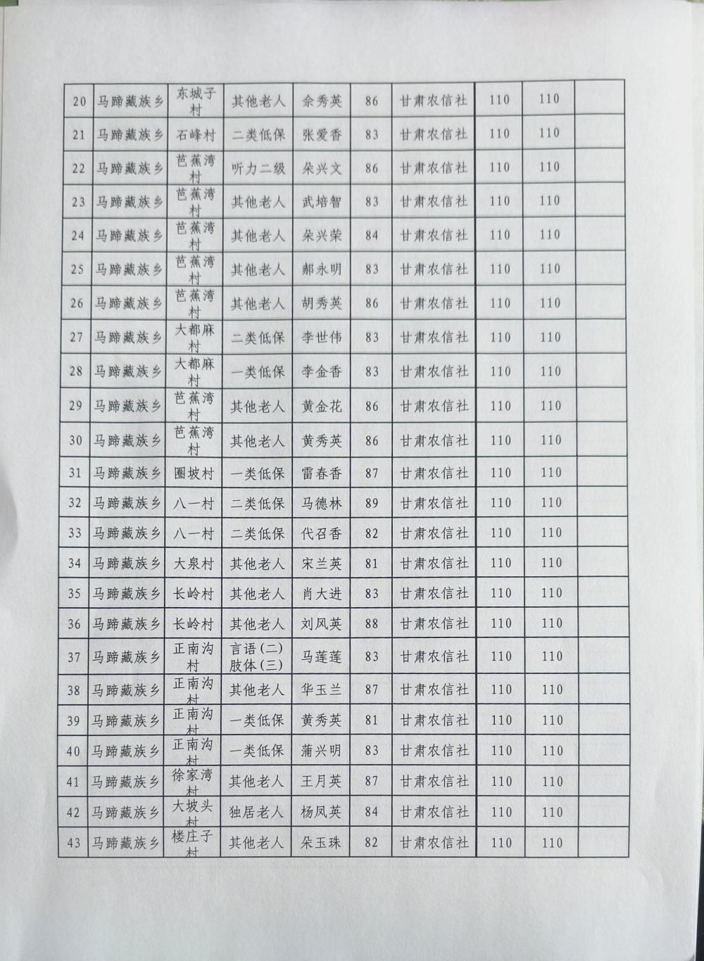 肃南县马蹄藏族乡2025年9月份高龄津贴公示