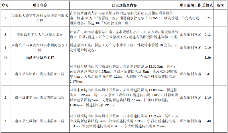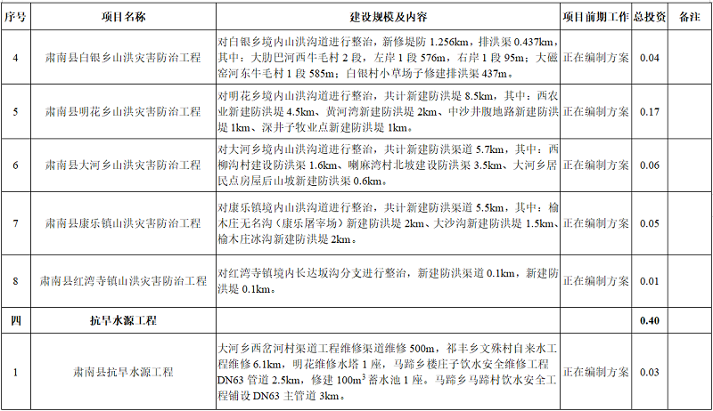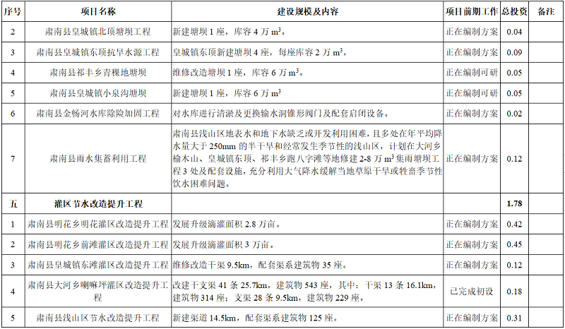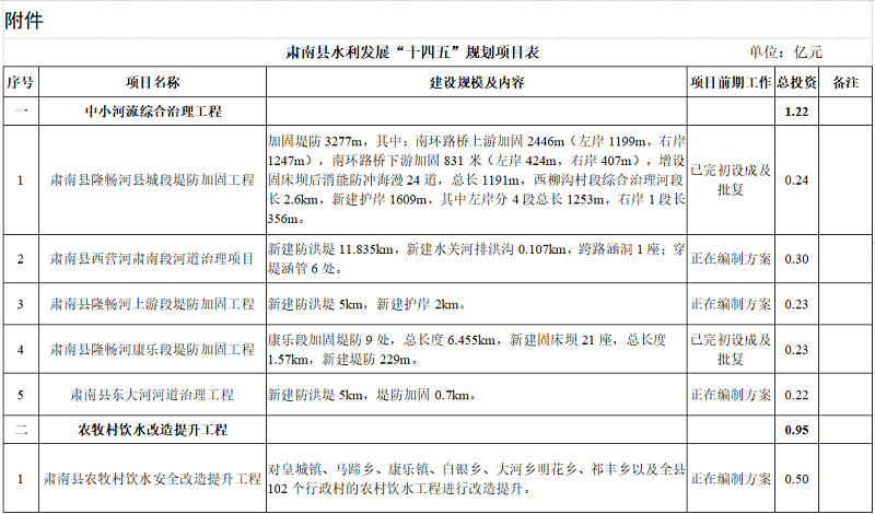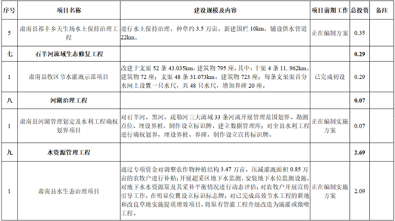 附表:肃南县水利发展“十四五”规划项目表