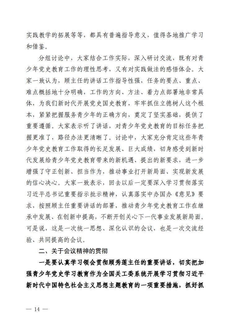肃南县关心下一代工作委员会办公室转发《顾秀莲同志、吴德刚同志在中国关工委青少年党史教育经验交流会上的讲话》的通知