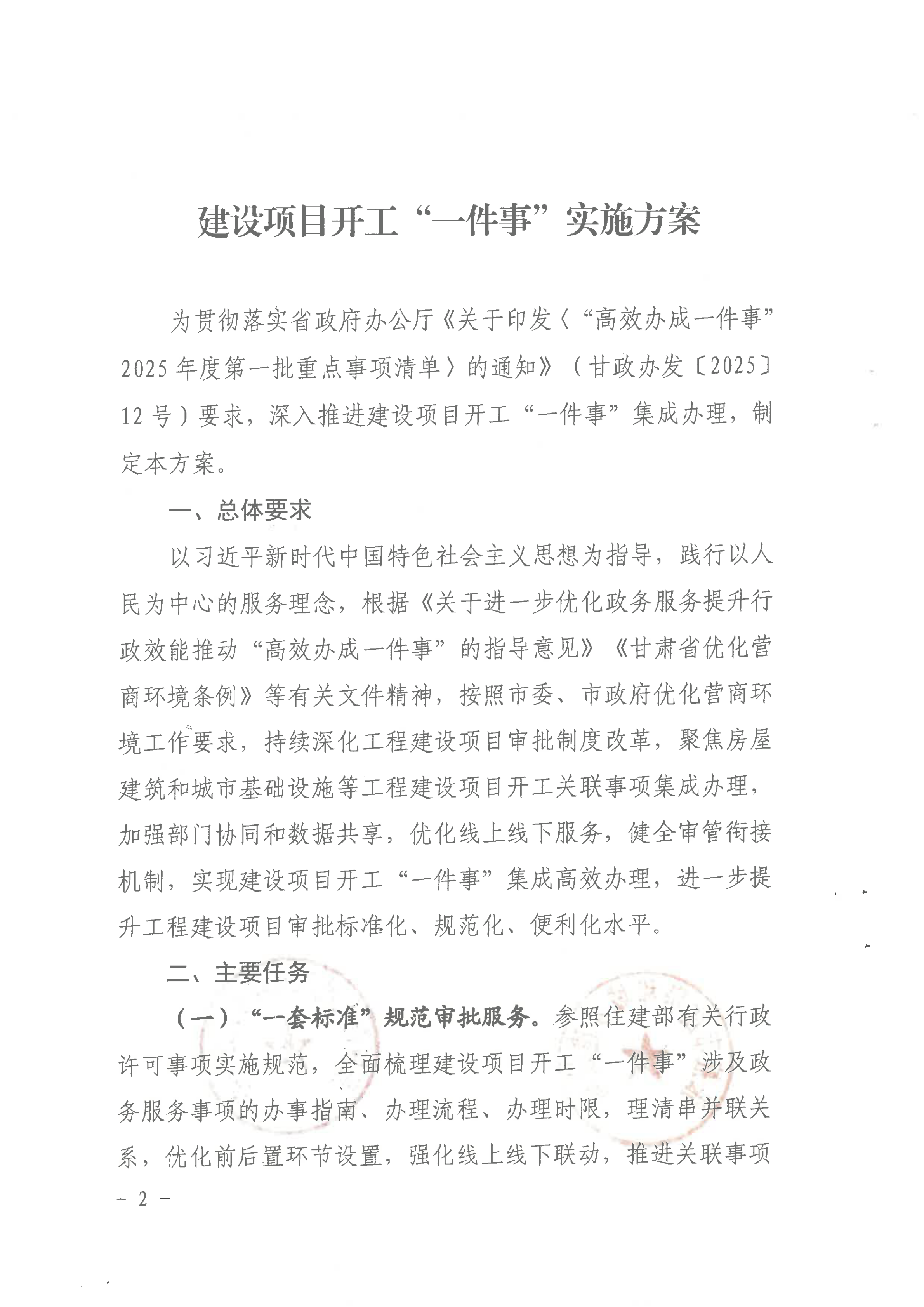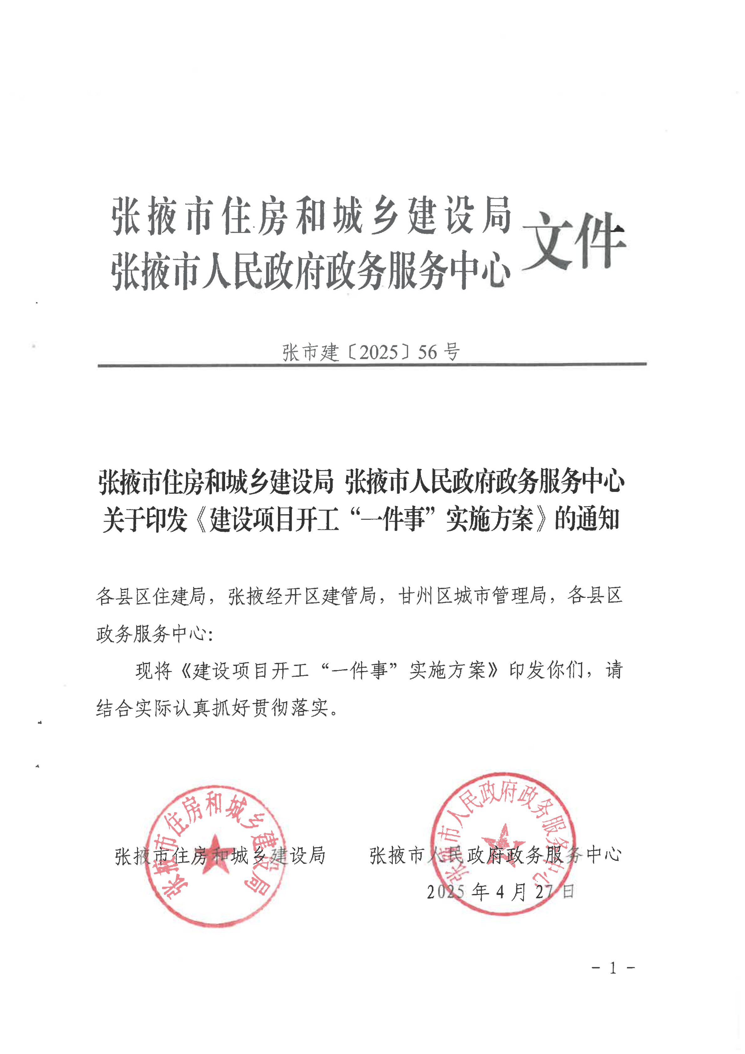 张掖市住房和城乡建设局张掖市人民政府政务服务中心关于印发《建设项目开工“一件事”实施方案》的通知