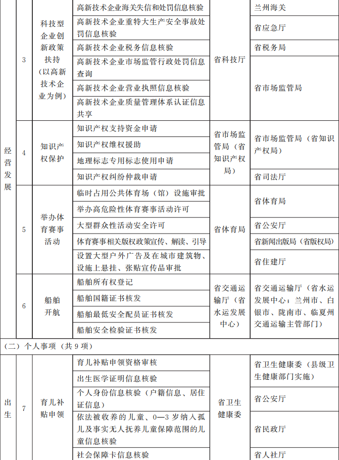 甘肃省“高效办成一件事”2026年度第一批重点事项清单